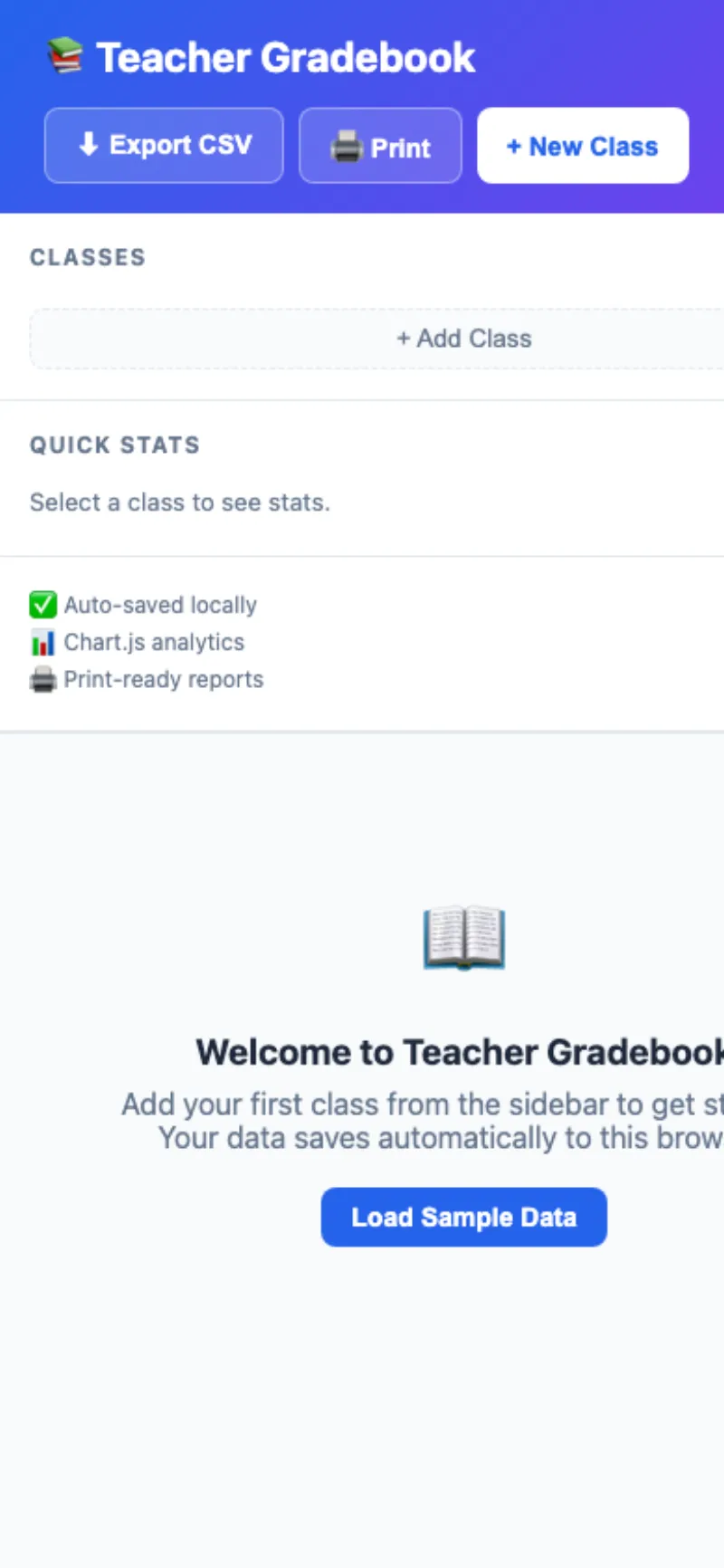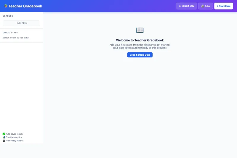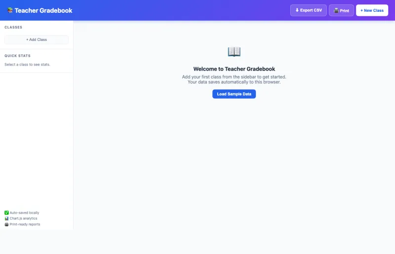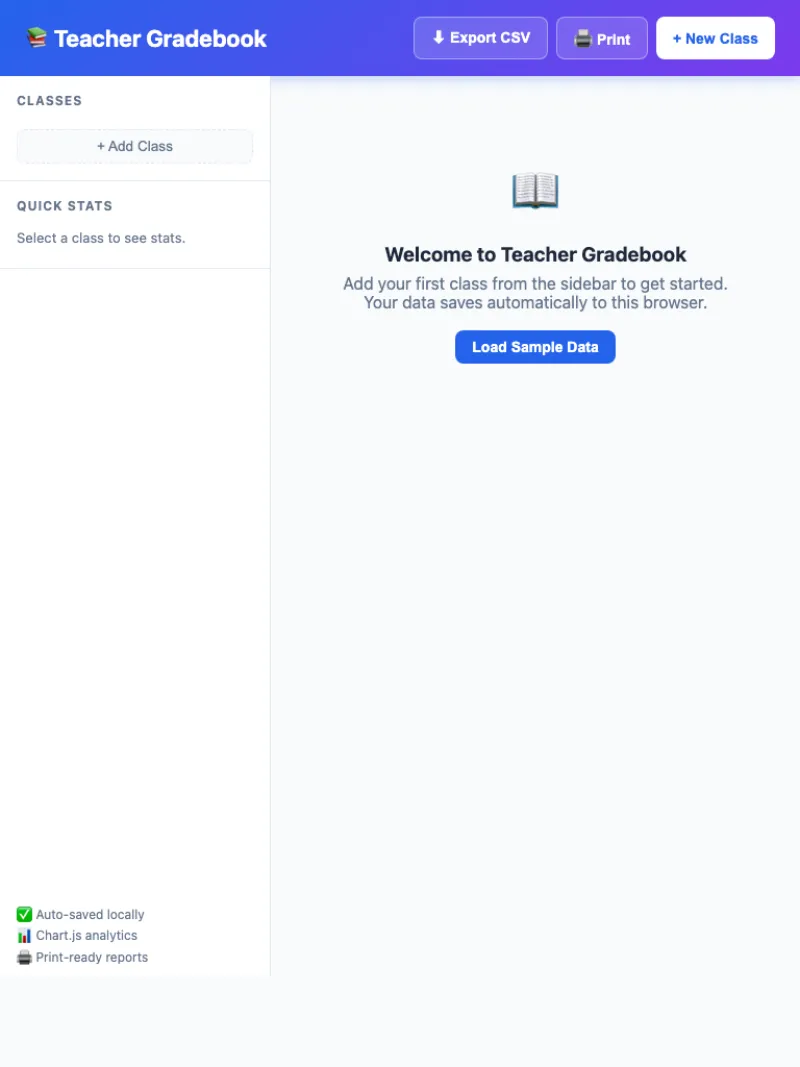 Multi-class support with 3 grading scales, category weighting, and 4 analytics views. Perfect for teachers who want a simple, powerful gradebook without paying for expensive software.